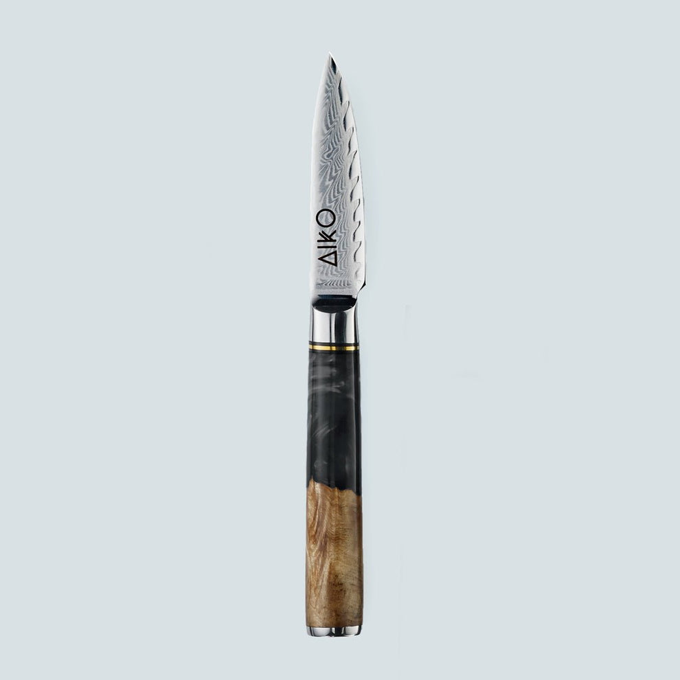 Aiko Black Damascus Steel Knife with Coloured Black Resin Handle