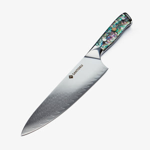 - Features a unique, colored Abalone Layer handle, designed for ergonomic comfort and aesthetic appeal.